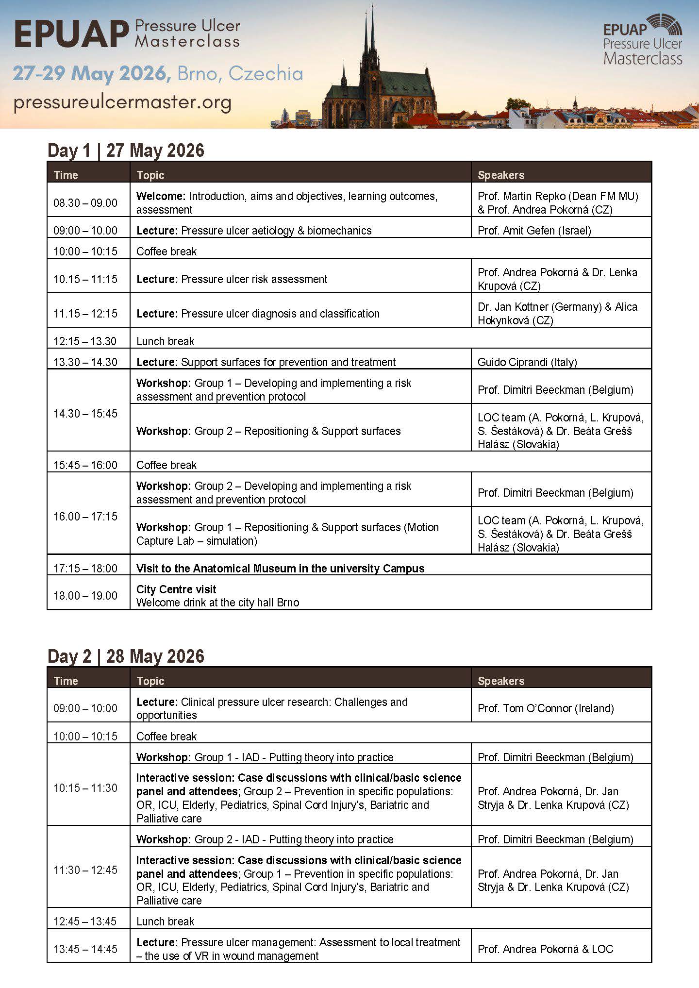 EPUAP MASTERCLASS will guide you through the experience and care in the world of pressure ulcers with innovation and sensitivity. The lecture Clinical Innovations in Pressure Ulcer Treatment will introduce you to novel and most recent approaches to pressure ulcer treatment.